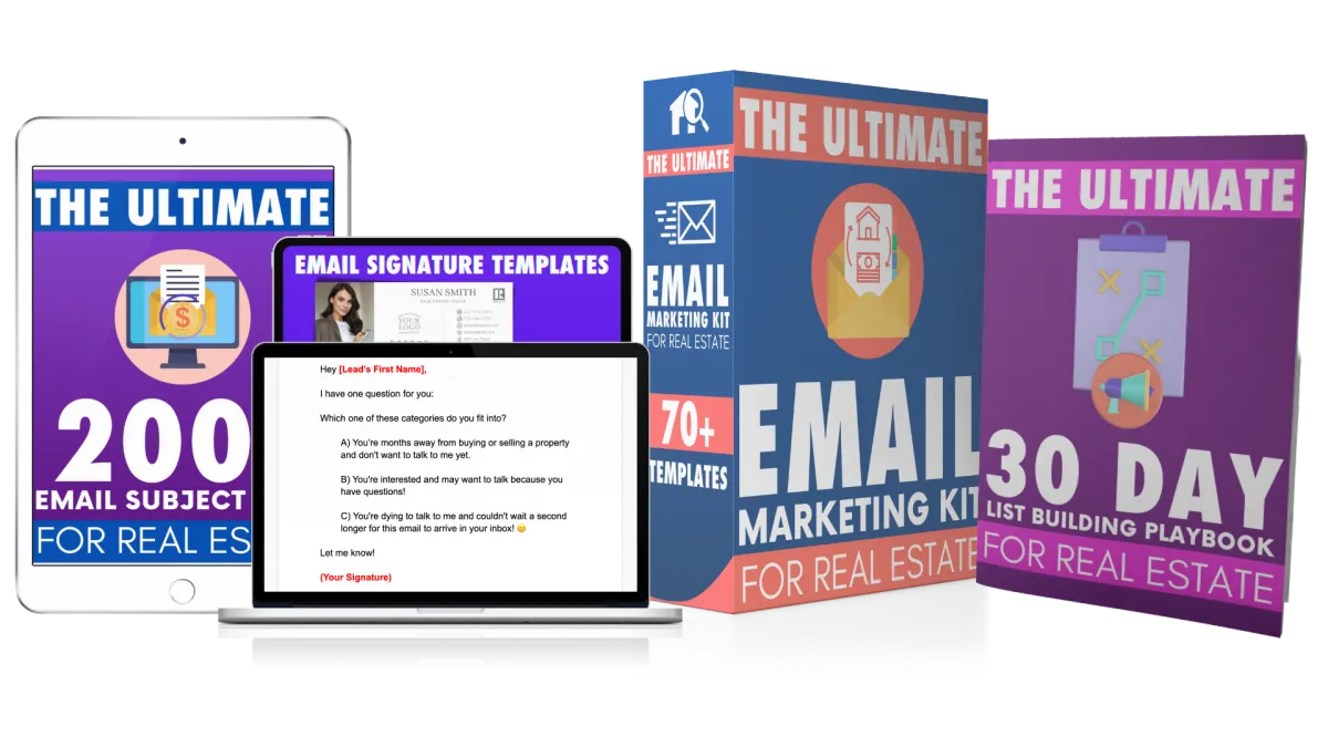 The Ultimate Email Marketing Kit will help you to become top of mind and set you apart from your competition. You get 70+ done for you emails to copy and paste, 200 proven subject line hooks to get your emails opened, stunning email signature templates, and an ultimate 30 day list building strategy playbook!