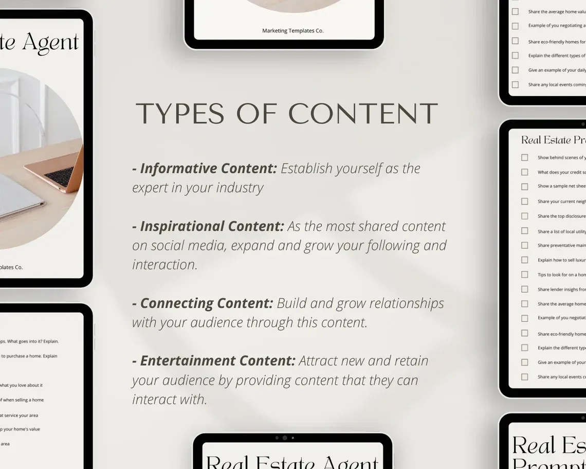 This seemingly endless list that's over 40 pages long provides you with unique and powerful content ideas to use for social media posts, videos, shorts, reels, blogs, and more. Never run out content ideas again for real estate.