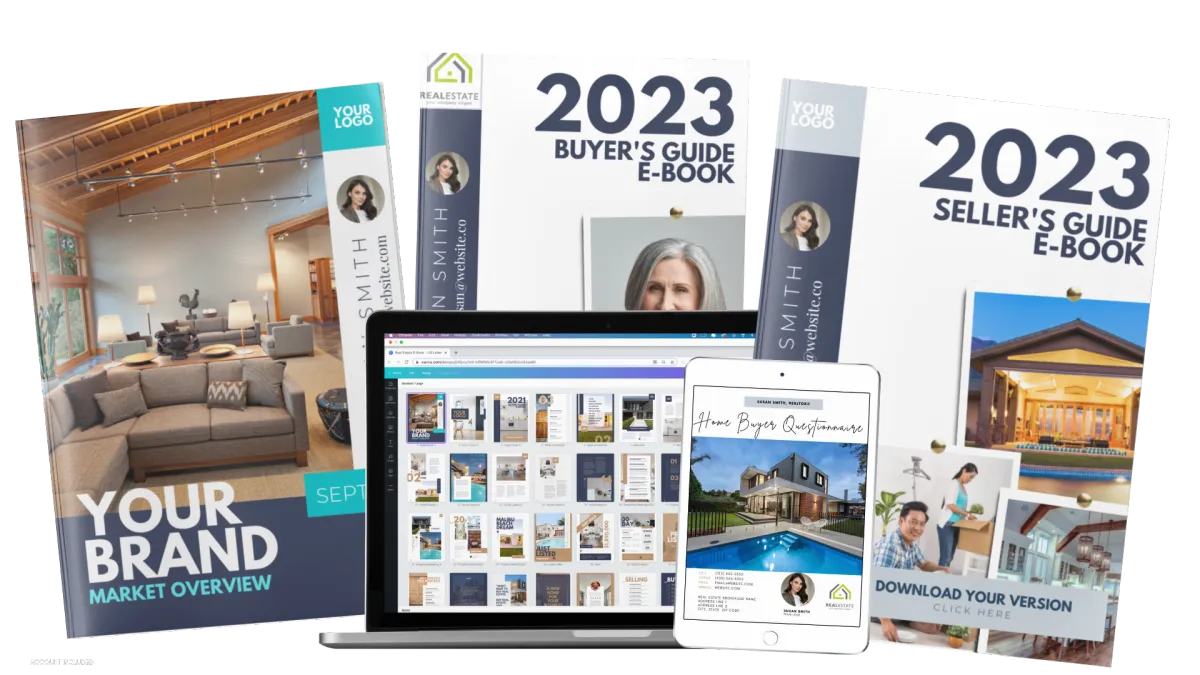 The Ultimate Branding Guides Bundle will save you massive amounts of time and money. You get access to our stunning Canva templates with built for you Buyer's Guide, Seller's Guide, and Market Overview. Having these designed would cost much more than our VIP Ticket. Just load into Canva and customize your branding.